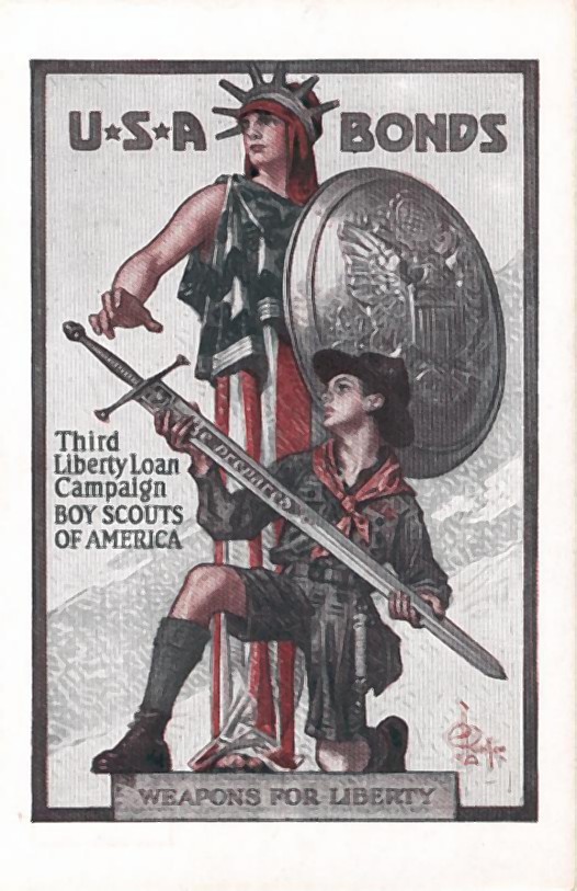 To assist the Scouts for the Third Liberty Loan Drive, he created his now familiar poster.
