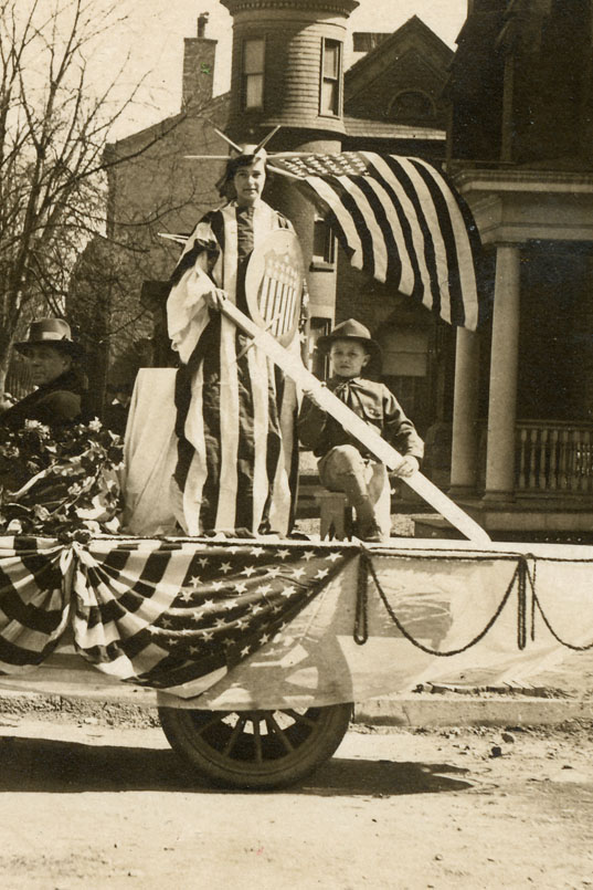 On at least one occasion, for a 1918 parade to honor service personnel and raise funds for the Liberty Loan in Poughkeepsie, New York, a float portrayed the Weapons for Liberty poster and was captured on at least two different real photo postcards.