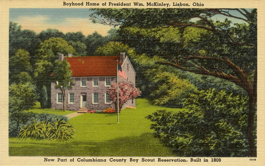 William McKinley died before the B.S.A. was founded, but his boyhood home became part of a Scout Camp in Ohio. As a result it appears on several postcards.